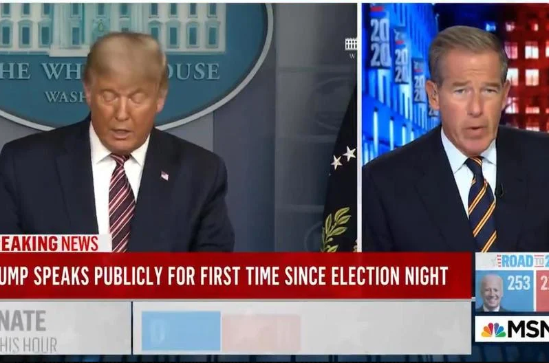 Tri velike američke TV kuće ABC, MSNBC i CBS prekinule su Tumpovo obraćanje iz Bijele kuće čim je spomenuo da je on pobjednik izbora. To se dogodilo u desetoj sekundi njegova govora.