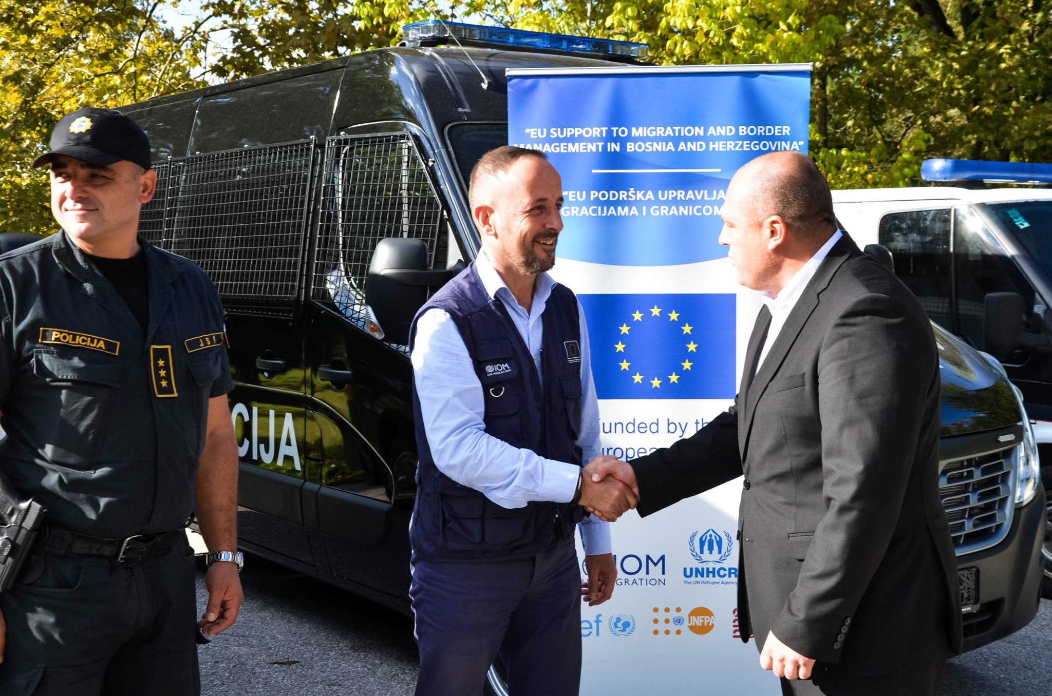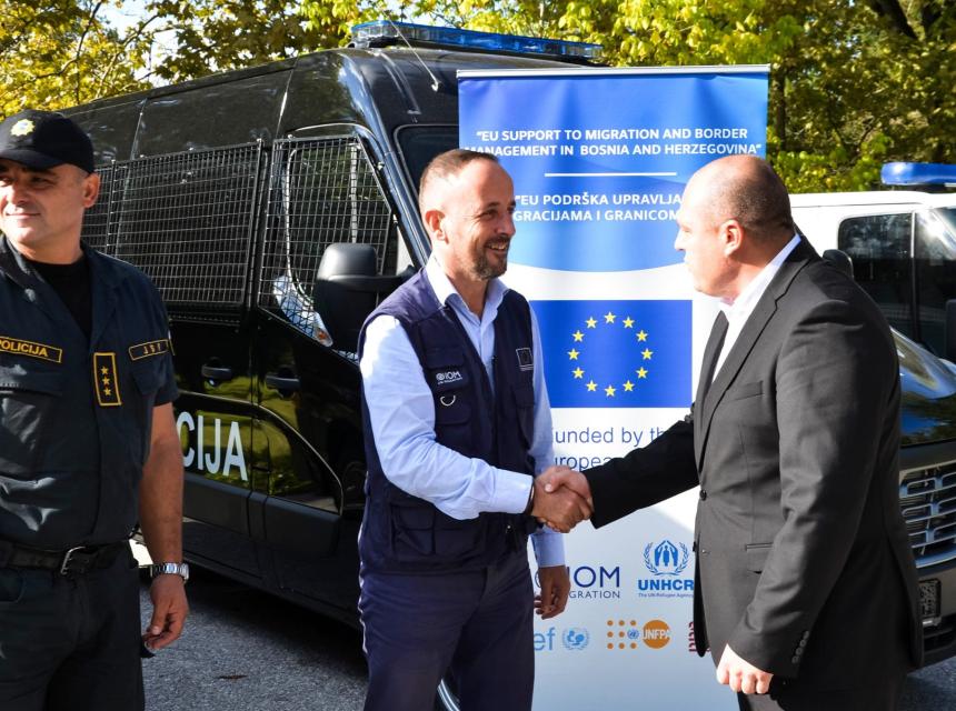 U sklopu projekta koji finansira Evropska unija u Bosni i Hercegovini “EU podrška upravljanju migracijama i granicom u BiH”, Peter Van Der Auweraert, koordinator za Zapadni Balkan i šef misije IOM-a u Bosni i Hercegovini, uručio je Ministarstvu unutrašnjih poslova Unsko-sanskog kantona ključeve tri nova policijska kombija u vrijednosti od preko 160.000 konvertibilnih maraka.
