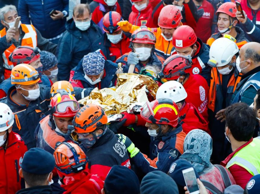 Elif Perincek izvučena je iz ruševina gotovo 65 sati nakon zemljotresa u okrugu Bayrakli u zapadnoj provinciji Izmir. Elif je 106. osoba koja je spašena iz ruševina i prebačena u bolnicu.