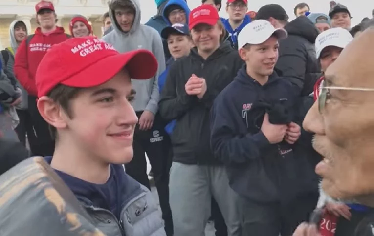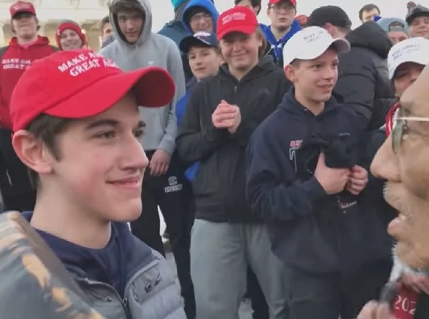 Kao što se vidi na snimci, učenici, od kojih je većina nosila kape s porukom američkog predsjednika Donalda Trumpa "Make America great again", su okružili starijeg čovjeka koji je svirao bubanj te su mu se izrugivali i dobacivali.