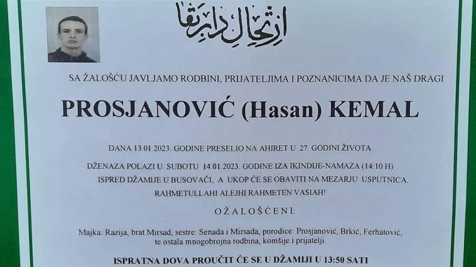 Danas je na ahiret preselio mladi Kemal Prosjanović u 27. godini života.