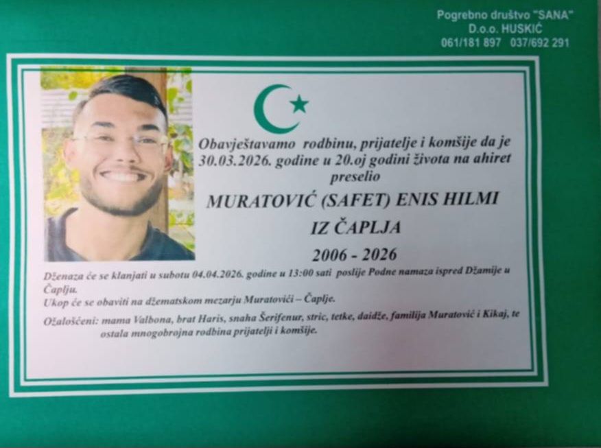 Obavještavamo rodbinu, prijatelje i komšije da je 30.03.2026. godine u 20.oj godini života na ahiret preselio