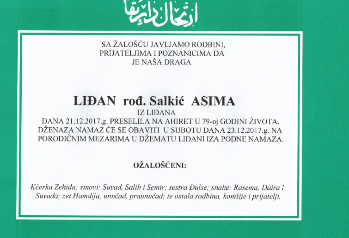 - Ljekari su nam savjetovali da mu zbog njegovog zdravstvenog stanja ne saopćimo tužnu vijest. Zadobio je lomove rebara i povrede glave. Otežano je disao pa je priključen na aparat za disanje. U stabilnom je stanju, ali u velikom šoku. Ušli smo mu na dvije minute, ali su nam ljekari savjetovali da ga ništa ne ispitujemo i ne razgovaramo – kažu članovi porodice Kapić.