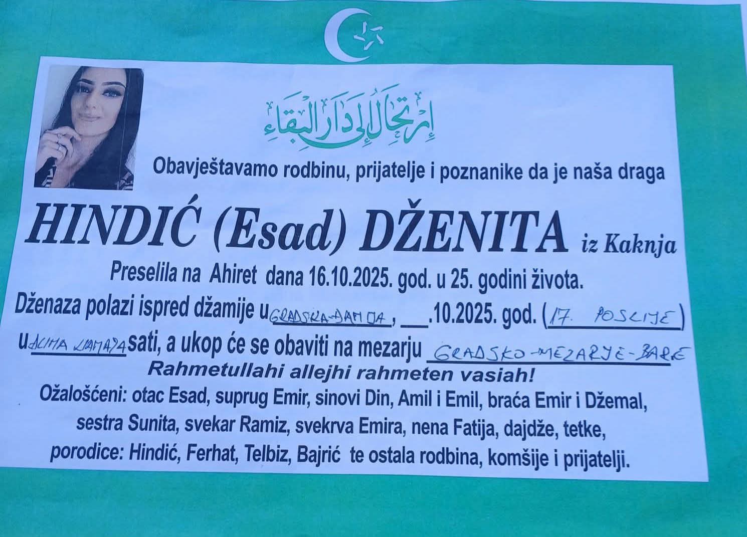 Kakanj je potresla tužna vijest o preranom odlasku Dženite Hindić, djevojke koja je u 25. godini života preselila na Ahiret.