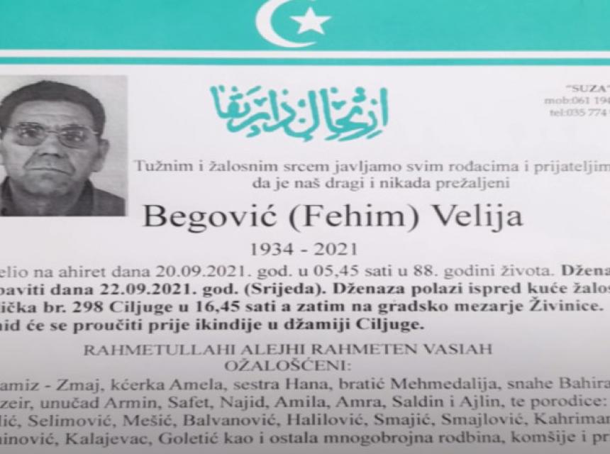 Velija Begović, otac Ramiza Zmaja preminuo je jutros u Živinicama. Ovu tužnu vijest objavio je njegov sin Ramiz Zmaj na svom YouTube kanalu.