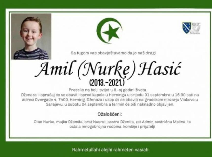 S tugom vas obavještavamo da je sin našeg Nurke Hasića Amil Allahovom odredbom napustio ovaj svijet i vratio se svome Gospodaru.
