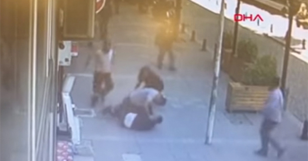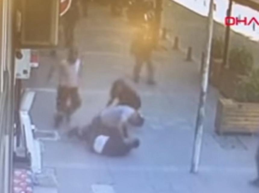 Nadzornom kamerom je snimljen trenutak u kojem muškarac napada i obara drugog čovjeka koji je prethodno udarao svoju bivšu suprugu.