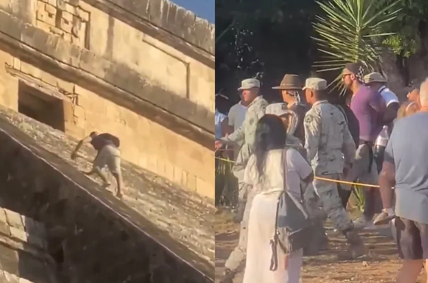 Situacija je eskalirala kada su ga pripadnici obezbjeđenja uhvatili i spustili s piramide – okupljeni su ga tada verbalno i fizički napali. Neki su čak vikali da treba biti "žrtvovan bogovima" – aludirajući na drevne majanske rituale u kojima su se na vrhu piramide prinosile žrtve, uključujući i ljudske.