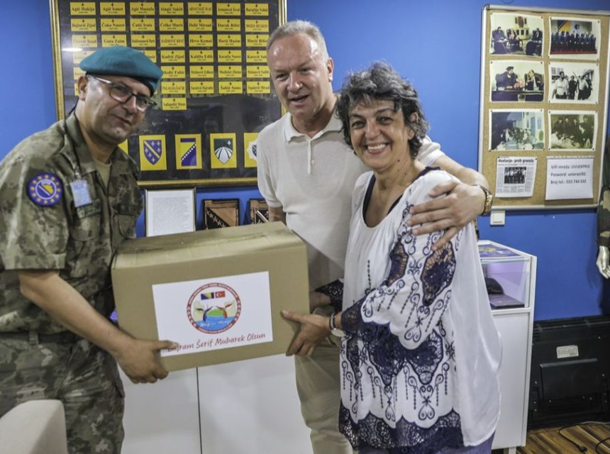 Turski vojnici, u saradnji s Crvenim polumjesecom Turske, podijelili su danas 20 paketa s osnovnim prehrambenim artiklima porodicama do s kojima su uspostavili kontakt preko Udruženja Prva brigada policije Stari Grad. Pakete su dobile porodice poginulih pripadnika policije u Kantonu Sarajevo.