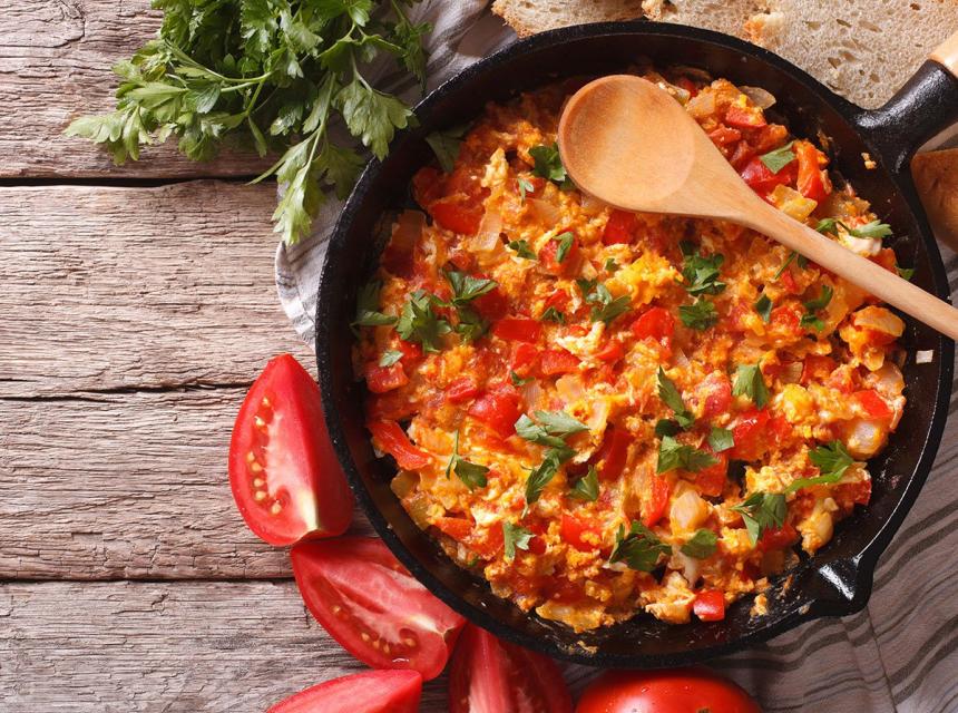 5. Uz stalno miješanjem, nastaviti sa prženjem sve dok se jaja lijepo ne povežu sa povrćem i postanu kremasta.