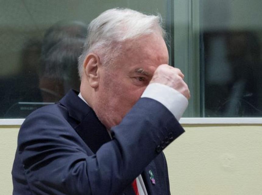 Prvostepeno vijeće Tribunala u Haagu je 22. novembra 2017. Mladića osudilo na kaznu doživotnog zatvora nakon što je zaključeno da je kriv za deset od 11 tačaka optužnice za genocid u Srebrenici 1995., zločine protiv čovječnosti u 15 bh. opština, progon, istrebljivanje, ubistvo, deportaciju, nehumana djela (prisilno premještanje), terorisanje, protivpravne napade na civile i uzimanje talaca.