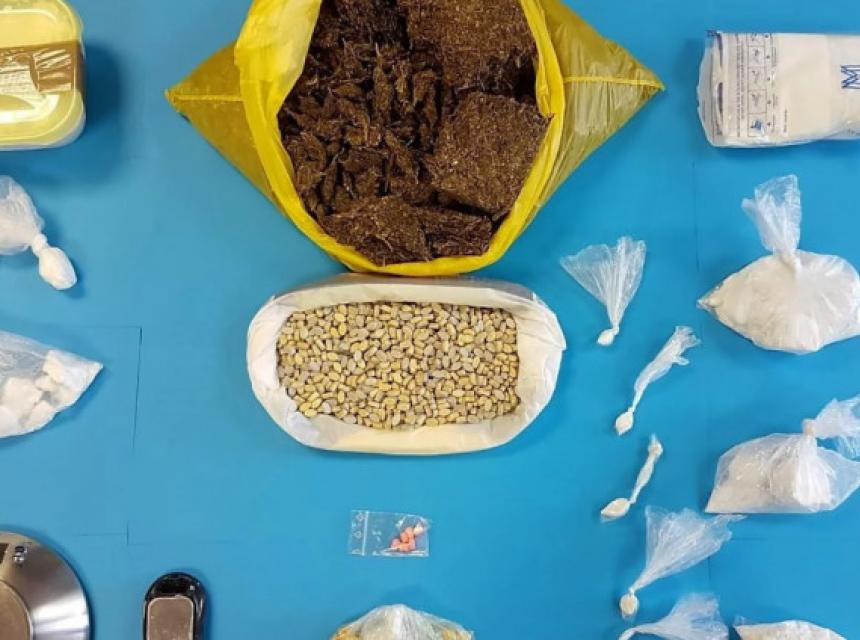 Također, pronađeni su 21 tableta "trazema" i "medilexa", nargila s tragovima materije koja svojim izgledom asocira na opojnu drogu kanabis, džoint, dvije šprice, drobilica, novac i tri mobitela.