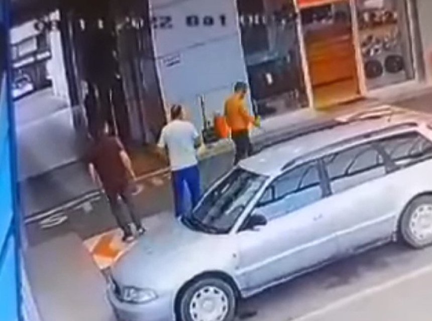 Na snimci se vidi da muškarac istrčava za radnikom i gađa ga nečim (vjerovatno čašom), a ispred objekta ga tjera da se skine go do pasa, odnosno da skine radnu majicu. Nakon toga ga je otjerao.