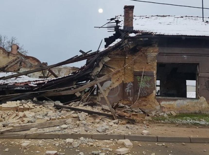 Pod velikim sniježnim nanosima konstrukcija ruinirane zgrade DTV „Partizan“ u tuzlanskom naselju Kreka nije mogla izdržati.