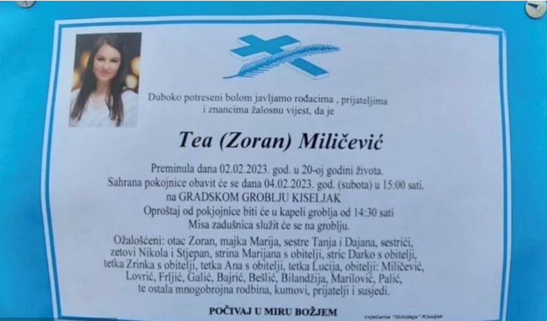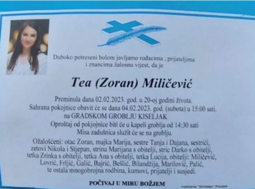 U dvadesetoj godini preminula je studentica Tea Miličević iz Kiseljaka, a tužna vijest potresla je Bosnu i Hercegovinu.