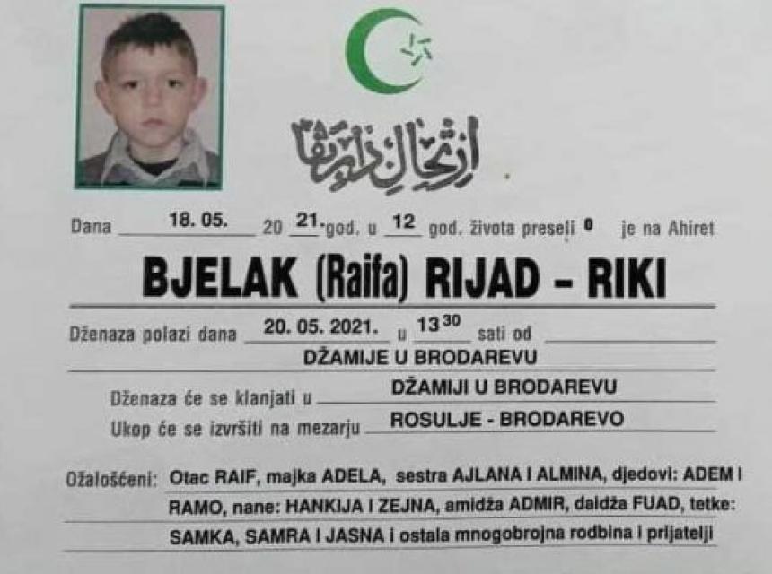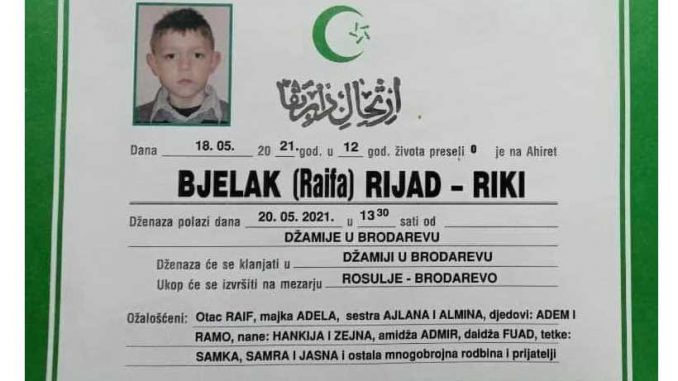 Tužnog srca i s bolom u duši obavještavamo rodbinu, komšije i prijatelje da je u utorak, 18.5.2021. godine u 12.godini života, Allahovom dž. š. odredbom, na Ahiret preselio naš dragi Bjelak (Raifa) Rijad – Riki.