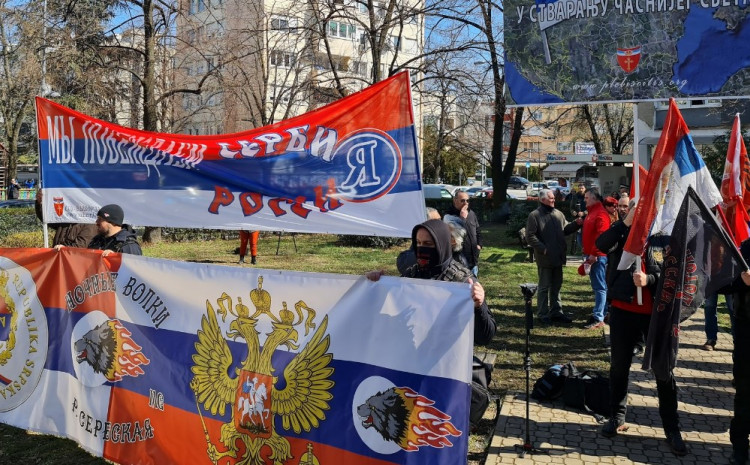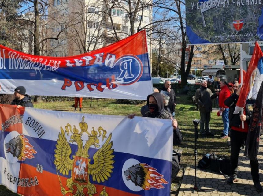 - Naš zaštitnik je Rusija sa Vladimirom Putinom. Zato smo se danas morali okupiti da damo podršku Rusiji - kazao je jedan od govornika na skupu u Banjoj Luci.