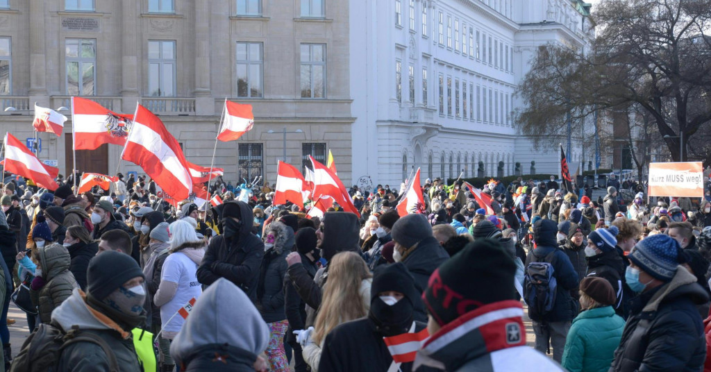 Više od hiljadu ljudi u subotu se ponovno u Beču odvažilo na prosvjede da bi iskazali nezadovoljstvo zbog restriktivnih mjera koje je austrijska vlada uvela zbog suzbijanja širenja koronavirusa.
