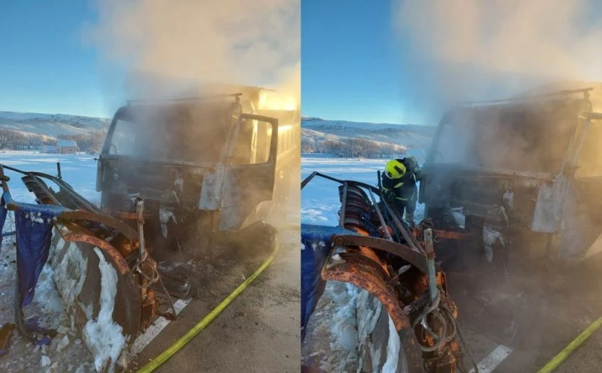 U Livnu je danas, 4. januara u jutarnjim satima izbio požar na grtalici za čišćenje snijega.
