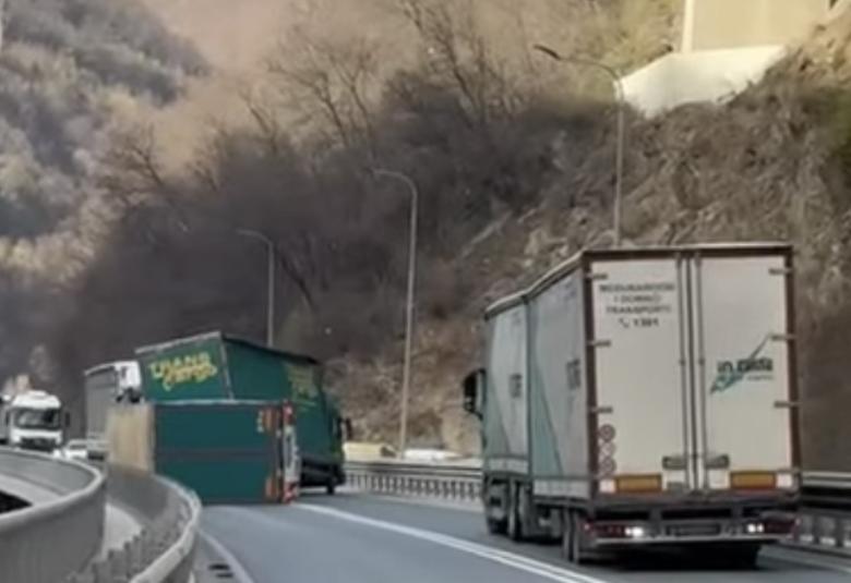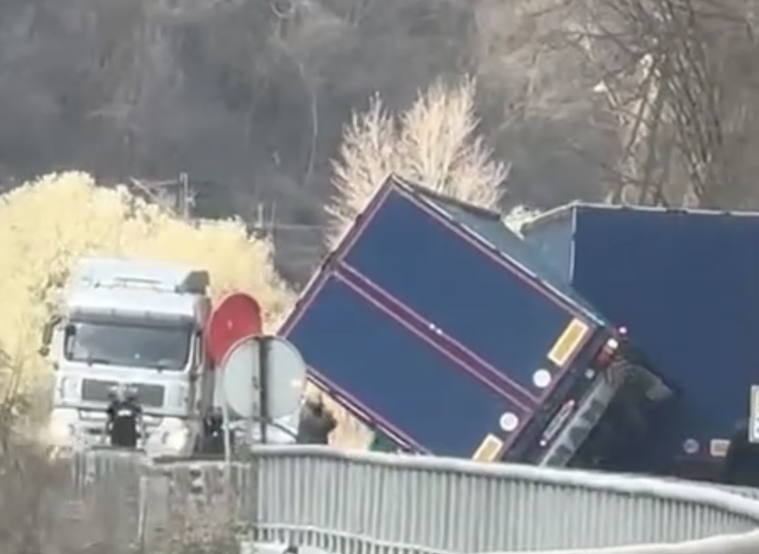 Na snimcima se vide teretna vozila koja su, zbog udara vjetra, završila prevrnuta preko kolovozne trake, što je izazvalo potpuno usporavanje saobraćaja i opasne situacije za ostale učesnike u vožnji.