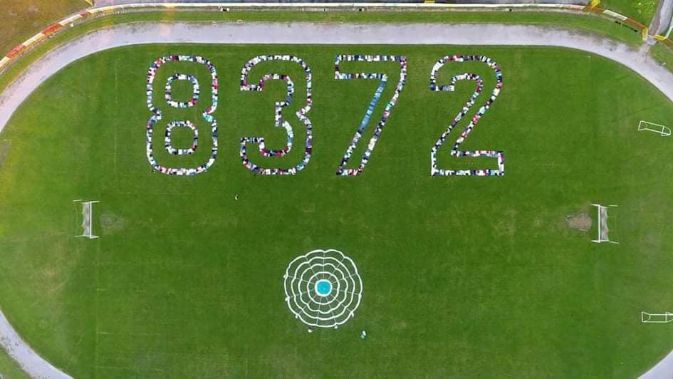 „Bili smo u dilemi kako da ove godine organizujemo performans. Na kraju je jedan od naših članova došao na ideju da umjesto ljudi koji formiraju broj postavimo odjevne predmete, kao simbol onoga što ostaje iza čovjeka. Postavili smo preko tri hiljade odjevnih predmeta da bi formirali broj 8372 koji oslikava broj ubijenih u genocidu u Srebrenici.“ – istakao je Muslić.
