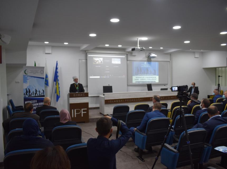 Od Adema, a.s., do Sudnjeg dana postoje migracioni procesi. Kur'an bilježi da je mnogo ljudi napustilo svoj dom i otišlo u druge krajeve. Primjer je Ibrahim, a.s, koji je napustio mjesto Harana osoba koja je emigrirala u Jerusalem. Migracije su kao fenomem posebno aktuelizirane u posljednje vrijeme i one zaokupljaju pažnju stručne i političke javnosti, ali i običnih građana. Kroz svoju hiljodogodišnju opstojnost, Bosna i Hercegovina se suočavala sa različitim izazovima od progona do iseljavanja, a danas je izazov da se u svojoj demografskoj, socijalnoj i ekonomskoj krizi suoči sa fenomenom masovnih migracija. Ova današnja tema je od velikog značaja da se i kroz naučno-istraživački rad rasvjetle legalne i nelegalne migracije, te da se ukaže svim akterima društva na put kojim bi svi trebali ići u suočavanju sa ovim fenomenom. – rekao je u svom obraćanju muftija Kudić.