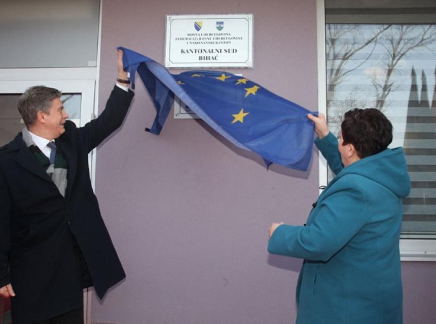 Šef Delegacije EU u BiH Lars-Gunar Vigemark naglasio je da je ovaj objekat namijenjen potrebama stanovnika Unsko-sanskog kantona (USK) da bi imali efikasnije pravosuđe.