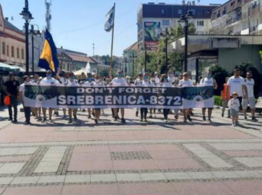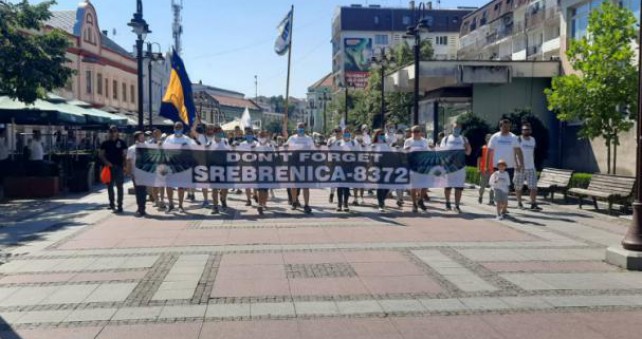 Zbog činjenice da ove godine nije bilo moguće učestvovati u Maršu mira Nezuk - Potočari, jutros je stotinjak Brčaka marširalo od Šehidskog mezarja u Gornjem Rahiću do Velikog parka u Brčkom kako bi na taj način podsjetili na put kojim su krenuli brojni Podrinjci nakon pada Srebrenice pokušavajući doći na slobodnu teritoriju. Na čelu ovog marša bili su članovi navijačke grupe BH Fanaticos iz Brčkog.