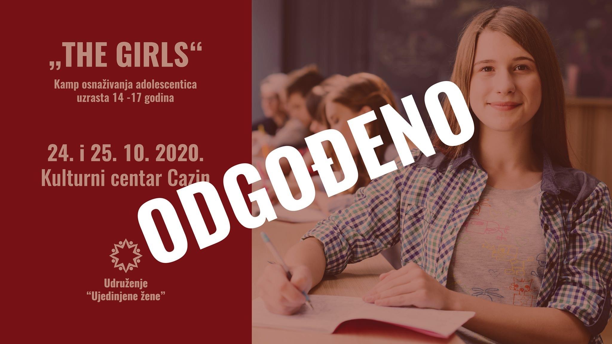Dvodnevni kamp “THE GIRLS” koji se trebao održati ovog vikenda u Kulturnom centru Cazin otkazan je zbog pogoršane eipdemiološe situacije.