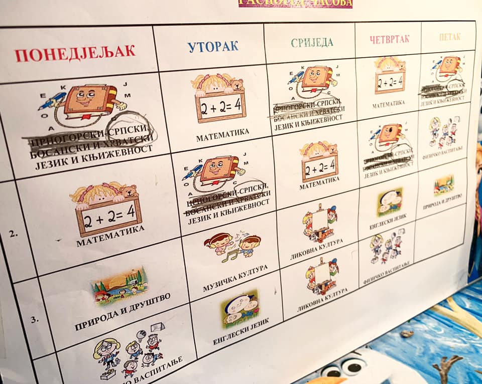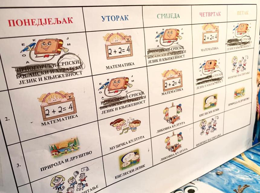 „Raspored časova moga Vuka: Kada država neće onako kako treba, učiće ga porodica“, napisao je Marko Milačić, lider Prave Crne Gore, na svom profilu na Facebooku uz fotografiju rasporeda časova crnogorskih osnovaca gdje se vidi kako djeca imaju časove crnogorsko-srpsko-bosansko-hrvatskog jezika i književnosti.
