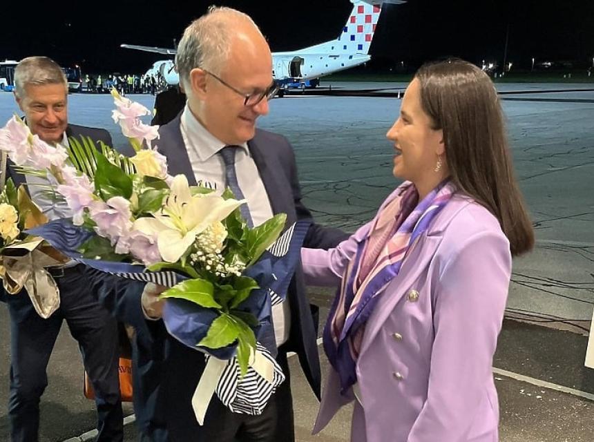 Italijana je na Međunarodnom aerodromu Sarajevo dočekala gradonačelnica Benjamina Karić.