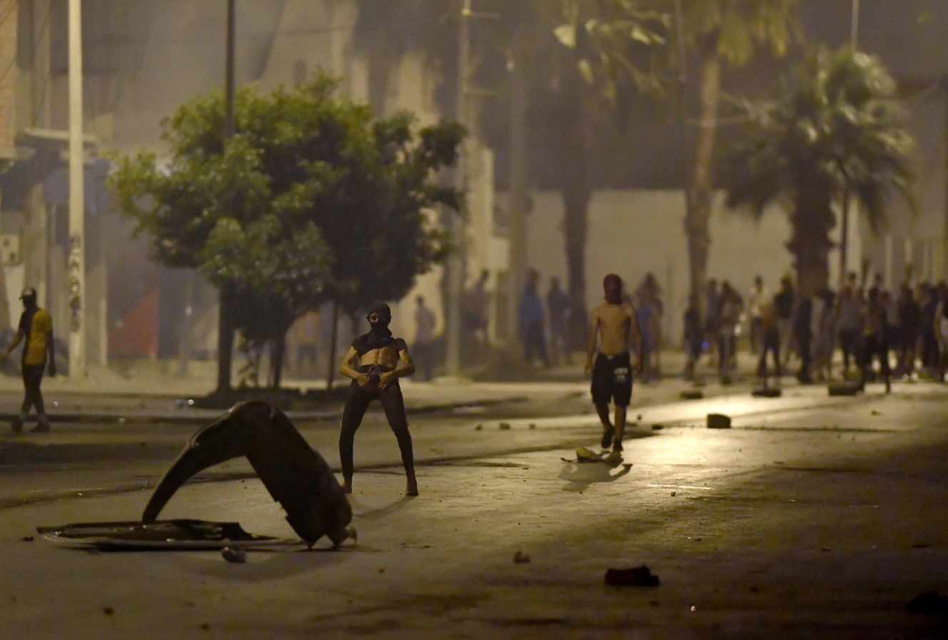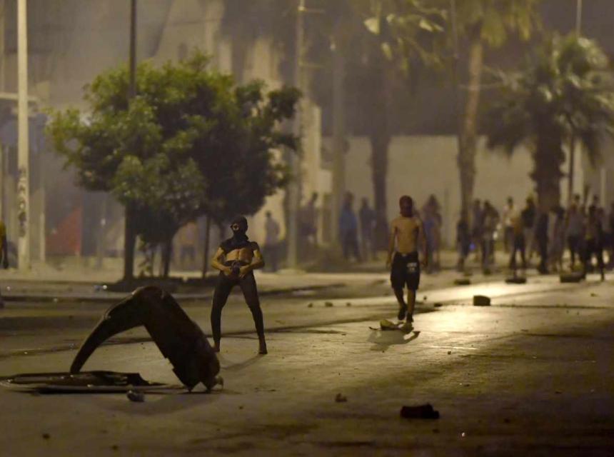 Sukobi su se dogodili u tuniskom naselju Sejoumi, a uslijedili su nakon prosvjeda koji su se održali ranije u subotu u središtu grada tijekom kojih su prosvjednici bacali stolice i kamenje na policiju, koja je uzvratila šutiranjem i udaranjem palicama.