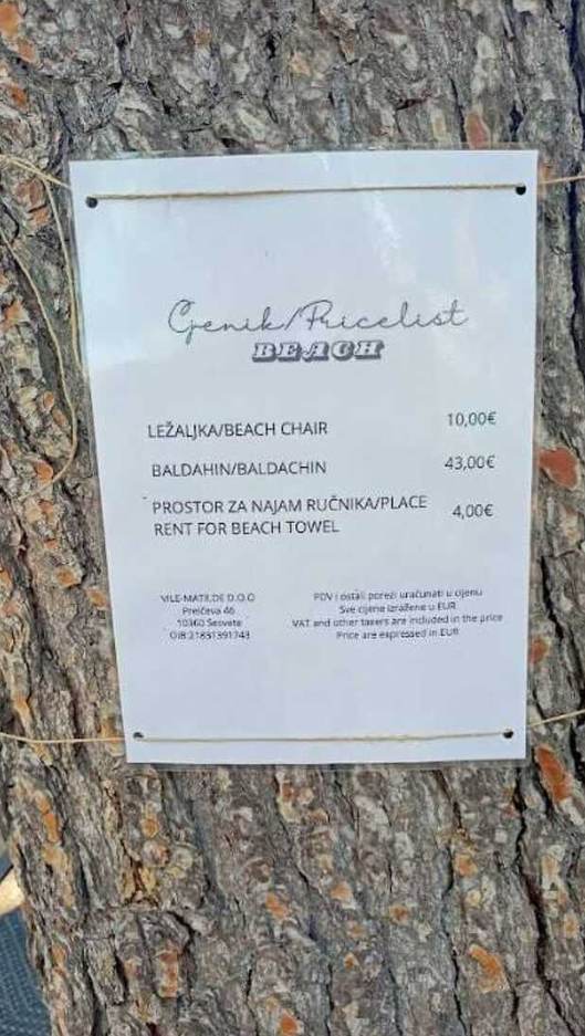 Kada govorimo o cijenama, na fotografijama se također može vidjeti da iznajmljivanje ležaljki košta 10 eura, dok je za baldahin potrebno izdvojiti 43 eura.