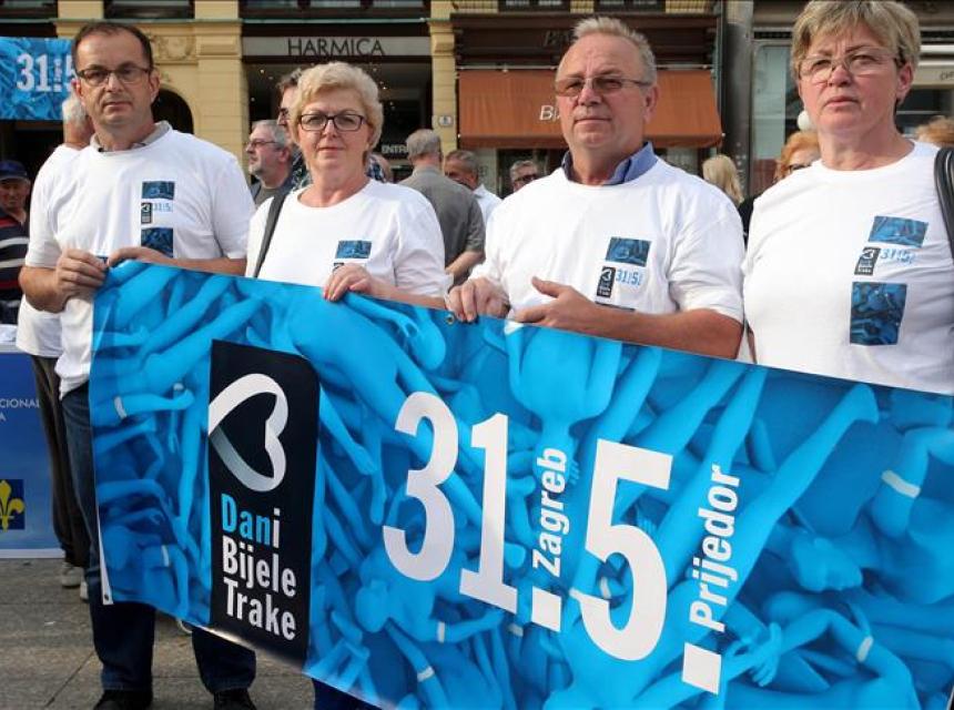 ZAGREB (AA) - Povodom obilježavanja Dana bijele trake na Trgu bana Jelačića se okupilo stotinjak osoba podržanih zagrebačkim gradonačelnikom Milanom Bandićem, predstavnicima Vijeća bošnjačke nacionalne manjine Grada Zagreba (VBNMGZ-a) i Hrvatskog doma Ljubija kako bi se podsjetilo na 3.173 ubijenih i nestalih civila u Prijedoru 1992. godine, javlja Anadolu Agency (AA).