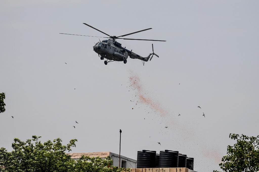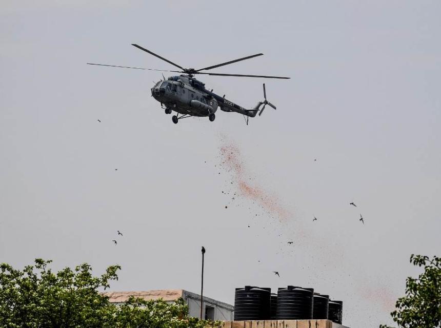 Indijsko Ratno vazduhoplovstvo je danas iz aviona u letu i helikoptera laticama cvijeća zasulo bolnice u New Delhiju i drugim gradovima.
