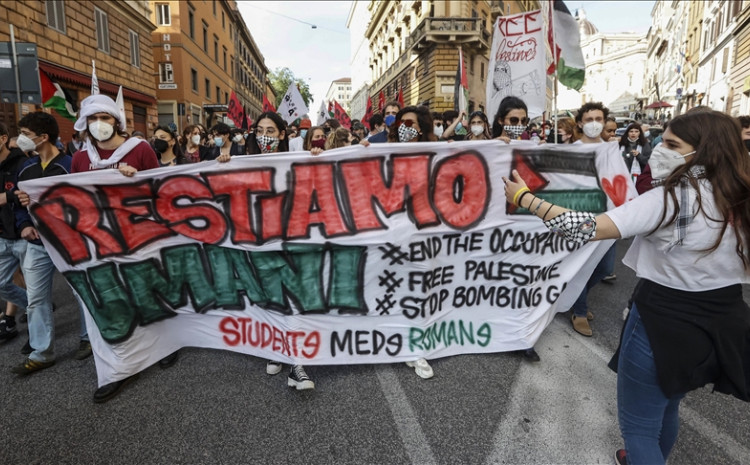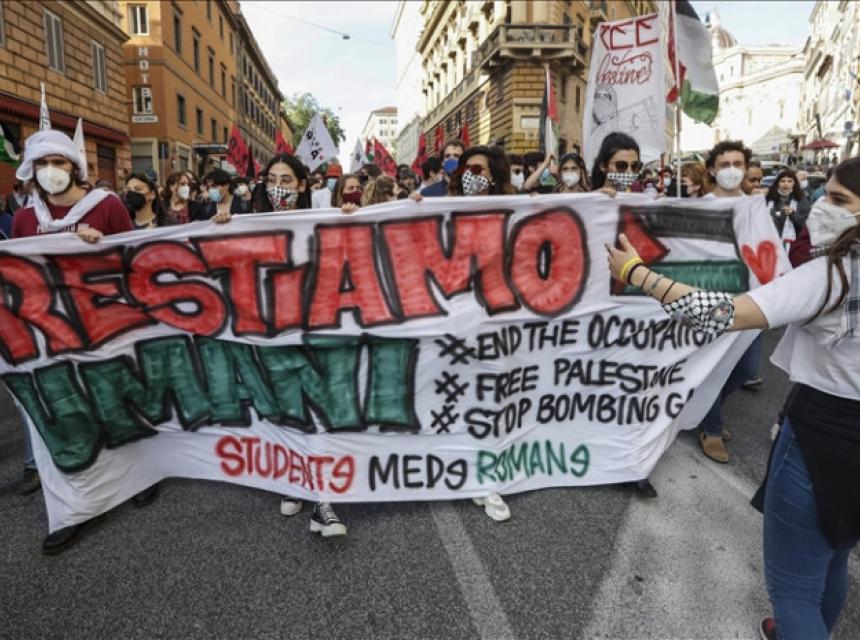 U Rimu, u Italiji održani su protesti zbog izraelskih napada na Istočni al-Quds (Jerusalem) i Gazu, javlja Anadolu Agency (AA).