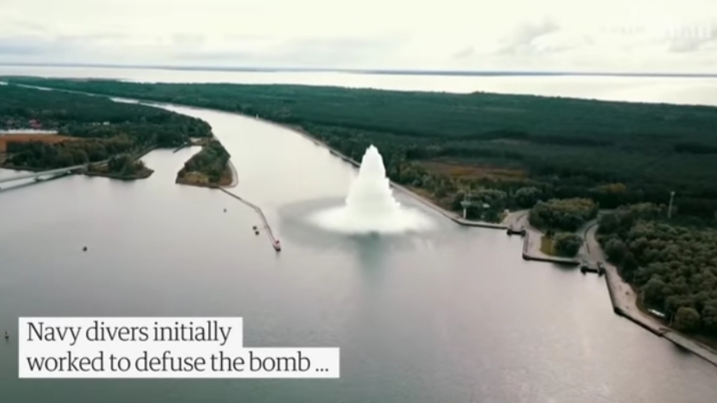 Međutim, bomba je ipak eksplodirala u kanalu blizu lučkog grada Swinojscie te je izbacila u zrak veliku količinu vode.