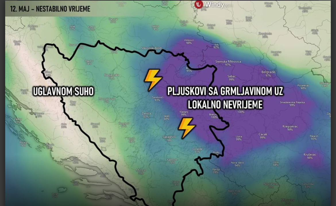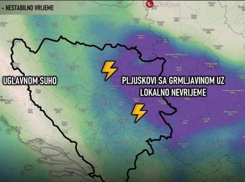 A u međuvremenu su se oglasili i na stranici BHmeteo, gdje su dali malo više detalja o tome gdje se tačno danas očekuje nevrijeme.