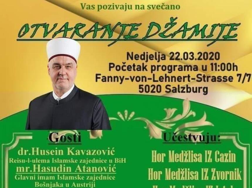 Na svečanosti otvorenja džamije 22. marta očekuje se veliki broj gostiju iz regije i svijeta, a učesnici na otvaranju džamije bit će: Dr. Husein Kavazović Reis-ul ema Islamske zajednice u BiH; Predsjednik Islamske zajednice Bošnjaka u Austriji mr.Senad Kusur ; Glavni imam Islamske zajednice Bošnjaka u Austriji mr. ef.Hasudin Atanović.