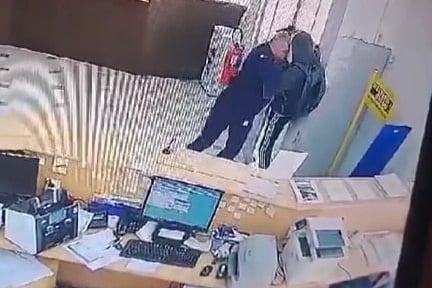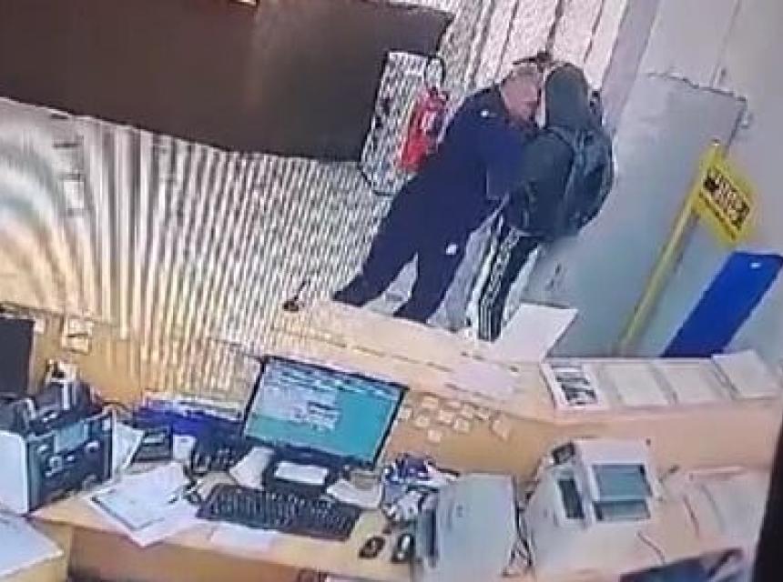 On je već na vratima zaustavio napadača, borio se s njim te ga na kraju i izbacio iz ove poslovnice.
