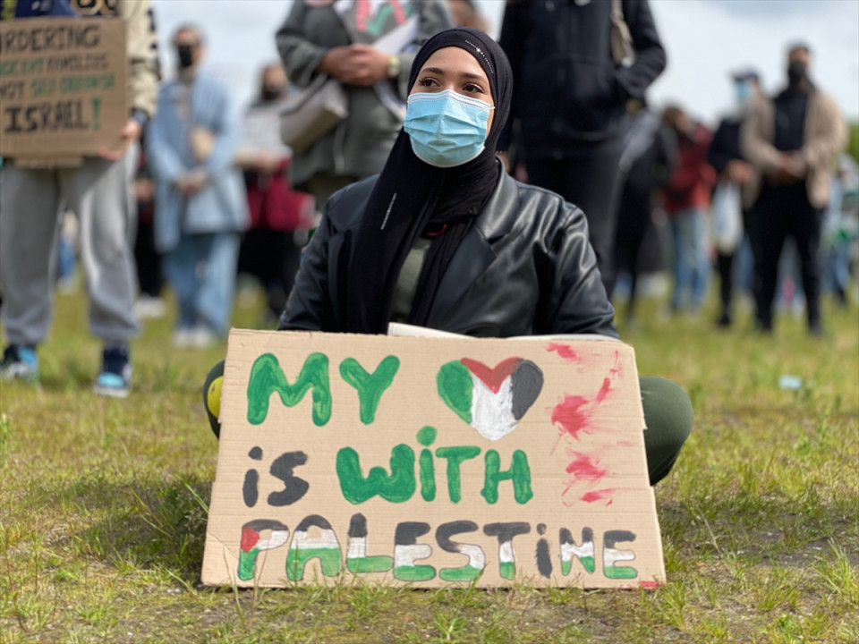 Okupljeni su nosili zastave Palestine i transparente s natpisima "Moje srce je s Palestinom", "Palestina će biti slobodna", "Svi smo Palestinci", "Bojkot izraelskog apartheida" i "Stop okupaciji" te uzvikivali "Sloboda za Palestinu".