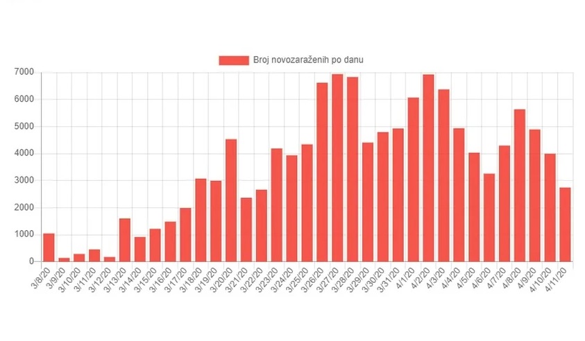 Ukupno je do sada um*lo 2.736 osoba od posljedica zaraze koronavirusom.