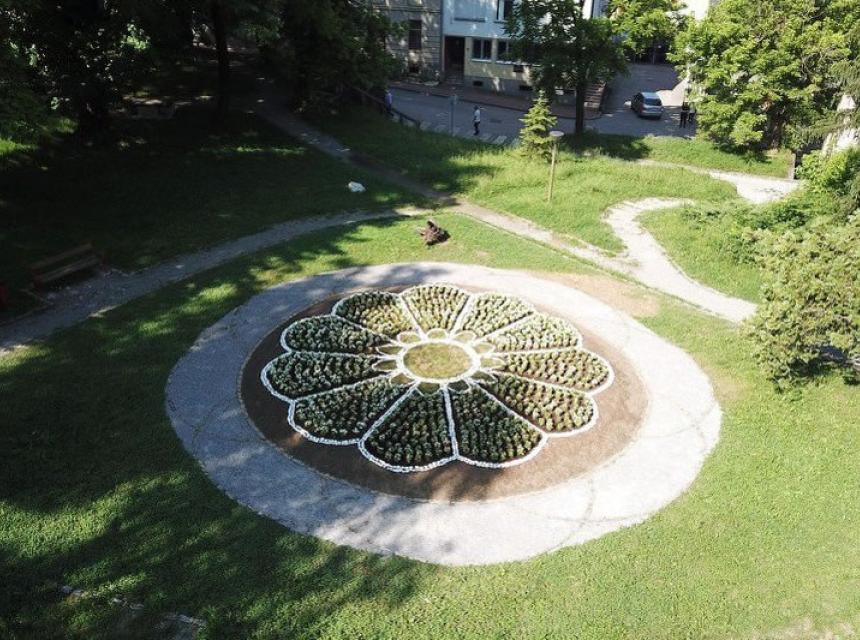 Cvijet koji se nalazi u administrativnom središtu općine sastoji se od jedanaest bijelih latica i zelenog tučka, u koje je zasađeno oko 1.400 sadnica bijelih bukvina. Izrađen je od prirodnih materijala koji će se održavati, obnavljati i prilagođavati godišnjim dobima.
