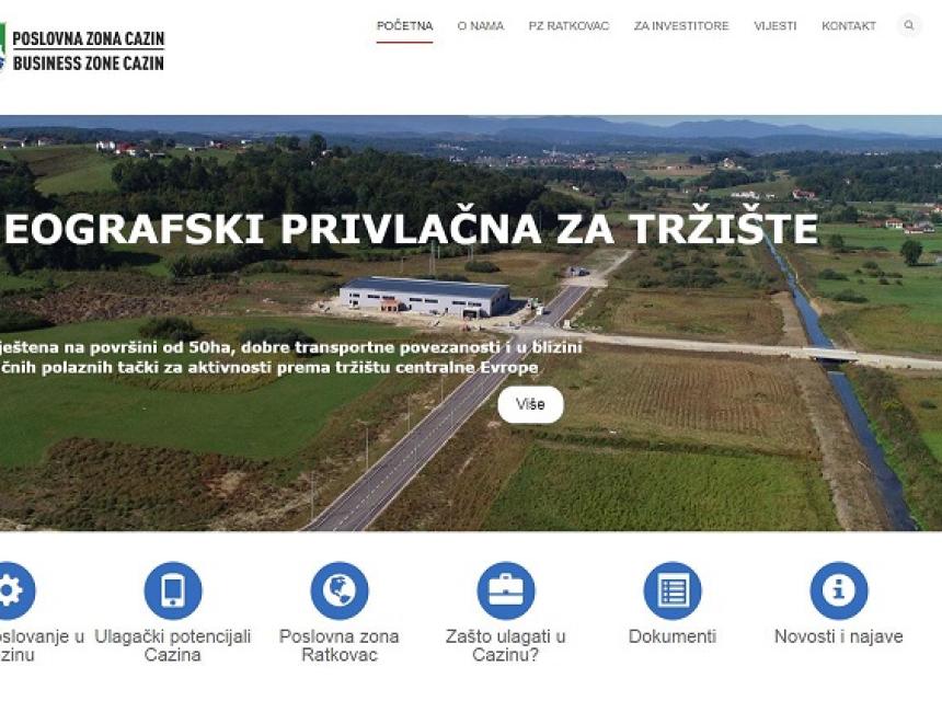 U moderno doba ovakav projekat neminovno podrazumjeva i postojanje web stranice, u ovom slučaju zamišljene kao informacione baze sa svim relevantnim informacijama o poslovnoj zoni, kao što su lokacija, izgrađenost infrastrukture, popis firmi, povlastice investitorima za poslovanje i slično. Potencijalnim investitorima stranica bi trebala pružiti detaljan uvid u raspoložive kapacitete u poslovanju koje bi mogli ostvariti u Cazinu. Naravno, stranica je namijenjena i građanima te svim zainteresiranim licima koji žele biti upućeni u poslovna dešavanja u gradu, te u sigurno projekat budućnosti za Cazin.