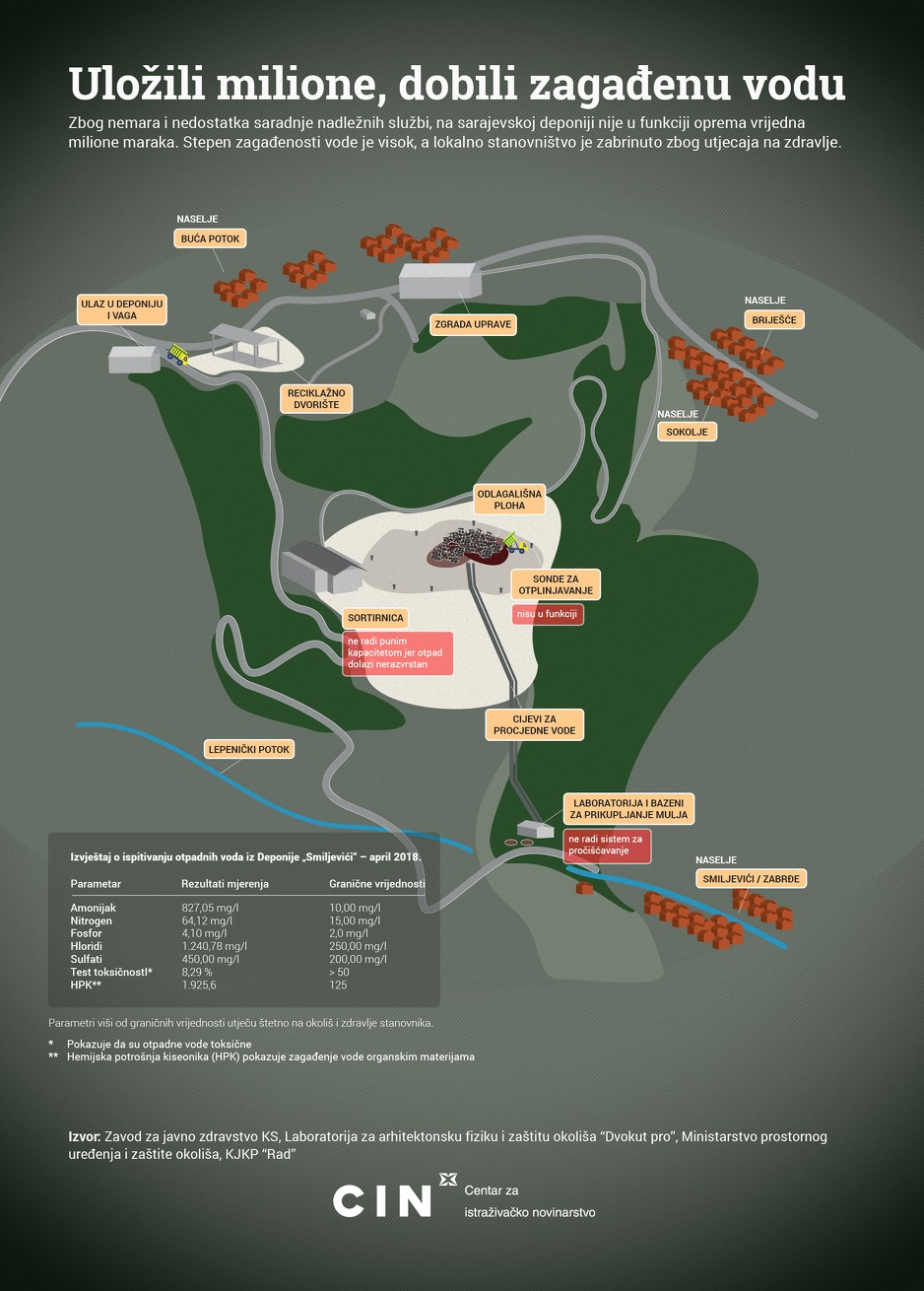 Novinari Centra za istraživačko novinarstvo (CIN) su otkrili da je u uređenje deponije za dvije decenije uloženoviše od 32 miliona maraka, ali je kontrola potencijalno toksičnih materija i dalje minimalna.Dio opreme je uništen ili propada jer se ne koristina pravi način. Nadležni prebacuju krivicu jedni na druge i kažu da treba još mnogo novca za poboljšanje stanja na deponiji.