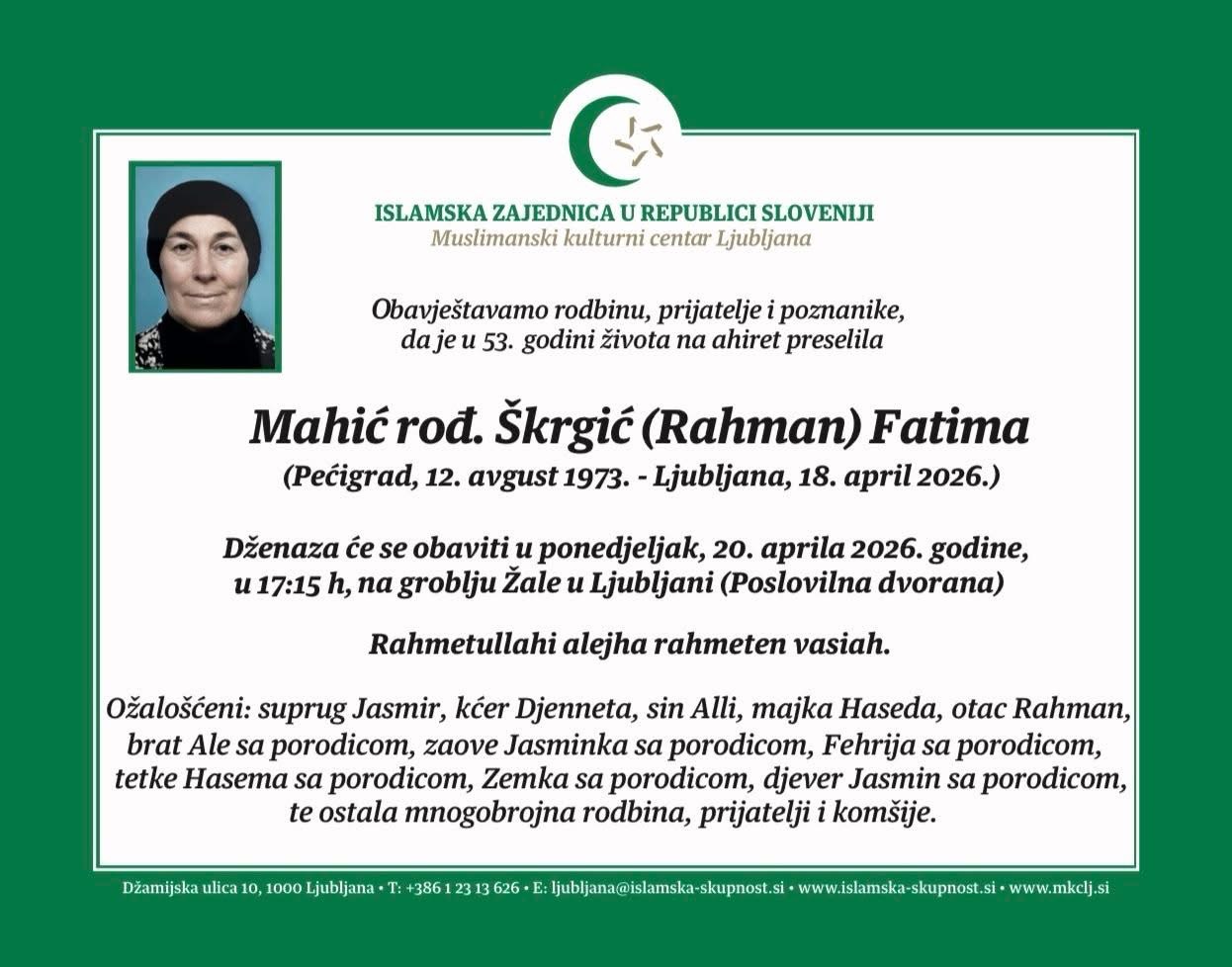 Dženaza će se obaviti u ponedjeljak, 20. aprila 2026. godine,