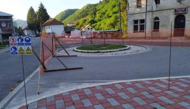 Prostor na kojem će se graditi spomenik i fontana već je ograđen, a saobraćaj u kružnom toku zaustavljen, piše eSrebrenica.