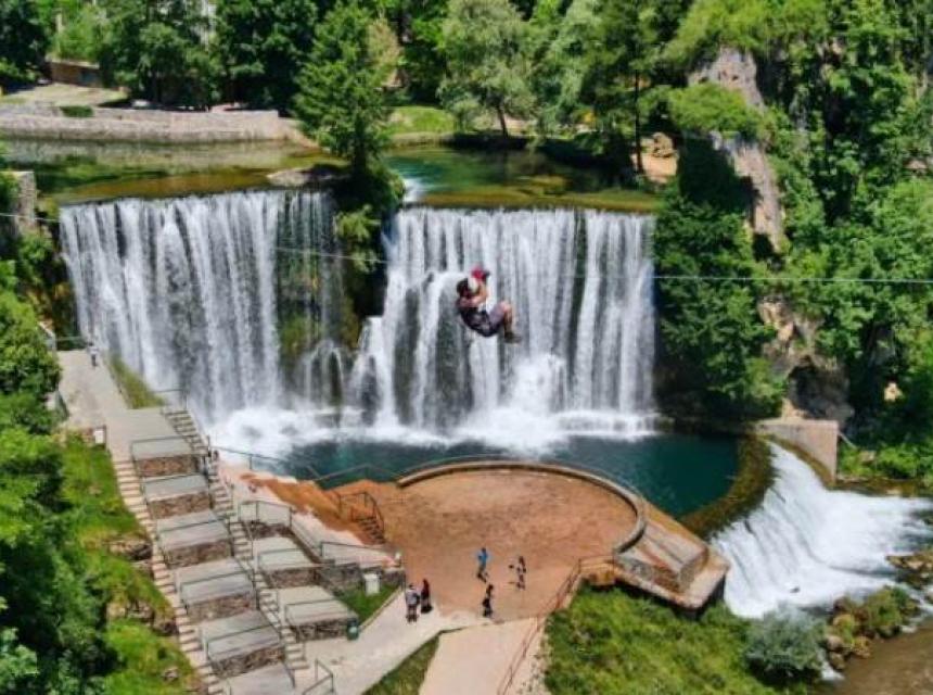 Ova adrenalinska atrakcija je jedinstvena jer nigdje ne postoji jedan takav zip-line preko vodopada, a posebno što se jajački vodopad nalazi u centru grada, stoji u priopćenju.