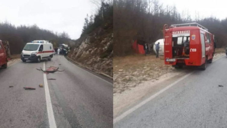 Na mjestu nesreće intervenirali su policija, Hitna pomoć i vatrogasci. Saobraćaj je bio u potpunosti obustavljen.