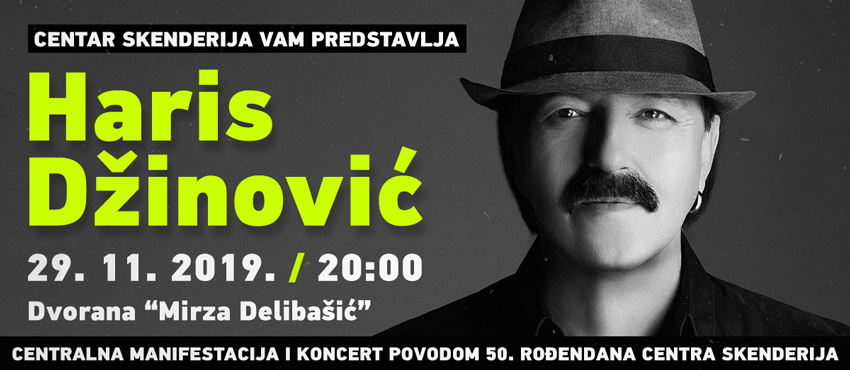 Povodom proslavljanja 50 godina od osnivanja, KJP Centar Skenderija priređuje slavljenički koncert na kojom će nastupiti jedan od najvećih interpretatora narodne muzike, Haris Džinović, a koji će se održati 29. 11. 2019. godine u velikoj dvorani „Mirza Delibašić“ Skenderija.